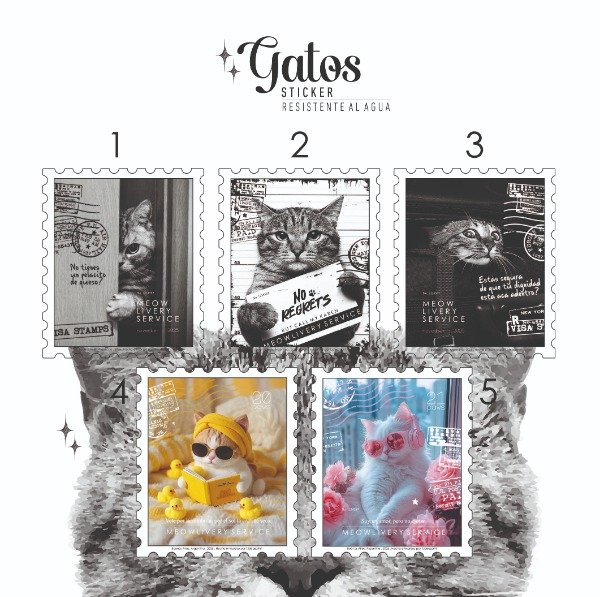 Stickers sueltos con forma de estampillas de Gatos!